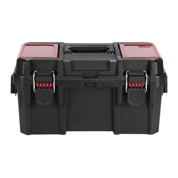 - Durable Construction: Crafted from heavy-duty resin, the toolbox is designed to endure the rigors of jobsite use and general wear and tear.